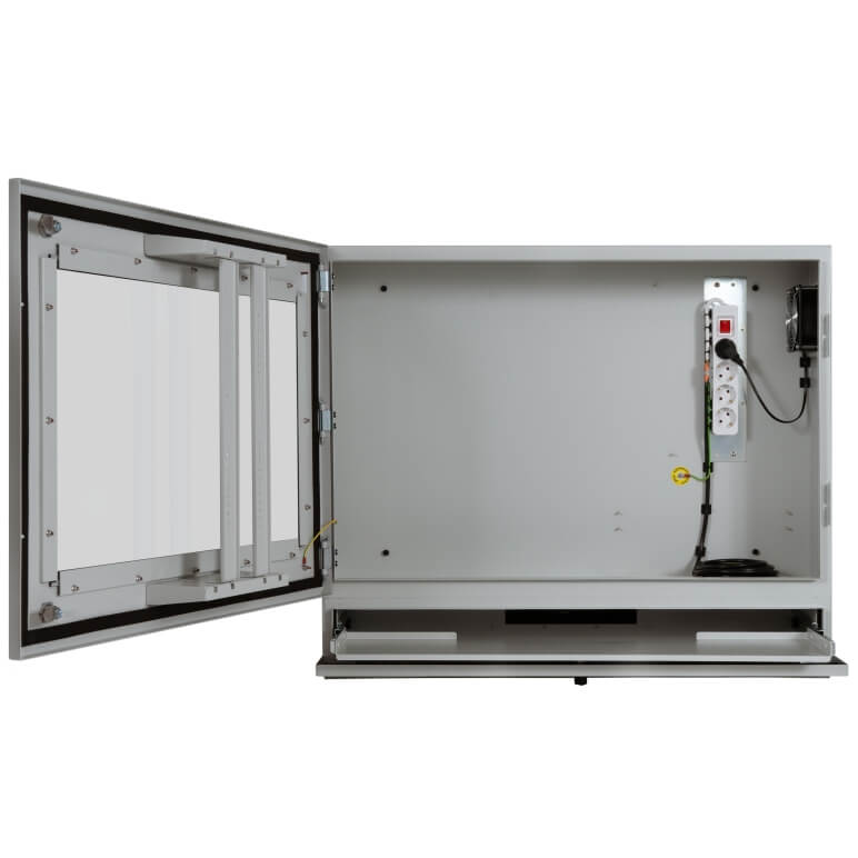| Pulverbeschichtetes Stahlgehäuse, Schutzart IP54 | Schützt IT-Ausrüstung vor durch industrielle Maschinen entstehenden Verschmutzungen sowie Öle, Schweißrückstände und physischen Beschädigungen. |